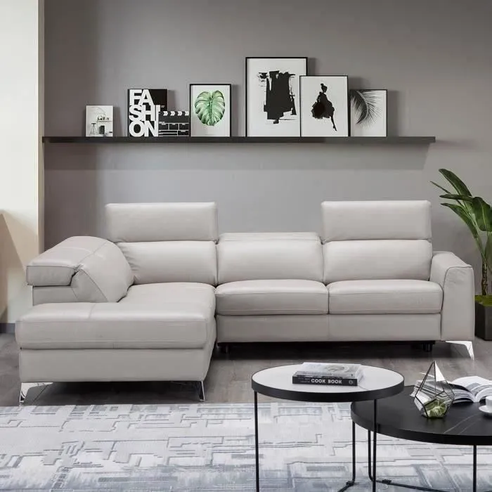 Canapé d’angle gauche 5 places EDISON – Cuir de vachette Beige – L 275 x P 231 x H 95 cm