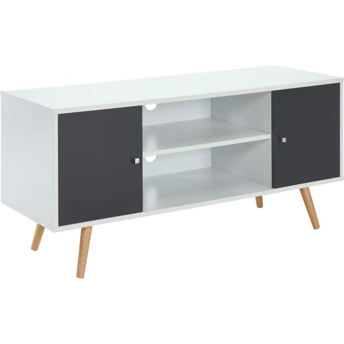 Meuble TV scandinave pieds en bois gris foncé et blanc – L 116 cm – BABETTE