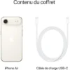 | Fonctions supplémentaires | Bouton d'action : accessibility, appareil photo, controls, lampe de poche, focus, loupe, recognize music, shortcut, silent mode, translate, visual intelligence, mémo vocal. Auto focus. Cuisson automatique et intelligente du riz. Assistance routière. Géolocalisation. Fonctions d'accessibilité : assistivetouch, sous-titres codés, eye tracking, live captions, live speech, loupe, personal voice, texte en temps réel (RTT), contenu oral, switch control, teletype (TTY), type to siri, vocal shortcuts, commande vocale, voiceover, zoom. Moteur photonique. Fusion profonde. Éclairage de portrait. Réduction du bruit du vent. Mode ralenti. Vidéo QuickTake. Partage d'écran. |