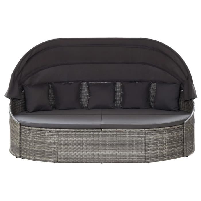 Chaise longue d’extérieur avec auvent Résine tressée Gris HB056