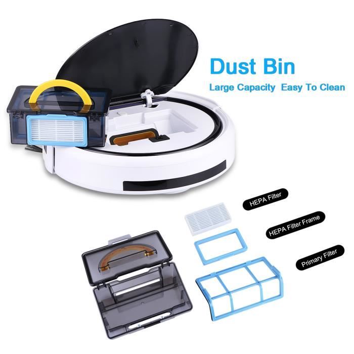 ★Avec réservoir d’eau indépendant, vous pouvez choisir la vadrouille humide ou sèche. ★Il est intelligent d’éviter la collision et le pare-chocs avant protège les meubles contre les dommages. ★Nettoyage automatique, nettoyage des taches, nettoyage des bords, effacement des réservations, mode de nettoyage MAX et fonction de nettoyage ★Bruit à faible bruit de 65db, aspiration forte de 850pa, boîte à poussière de dou…