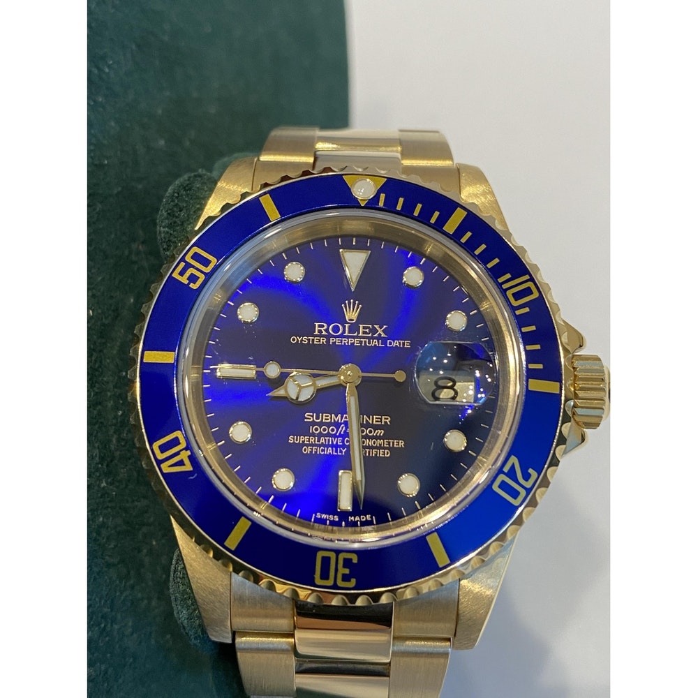 Rolex Submariner Date or jaune massif 18 carats avec superbe cadran bleu royal sur bracelet à huîtres