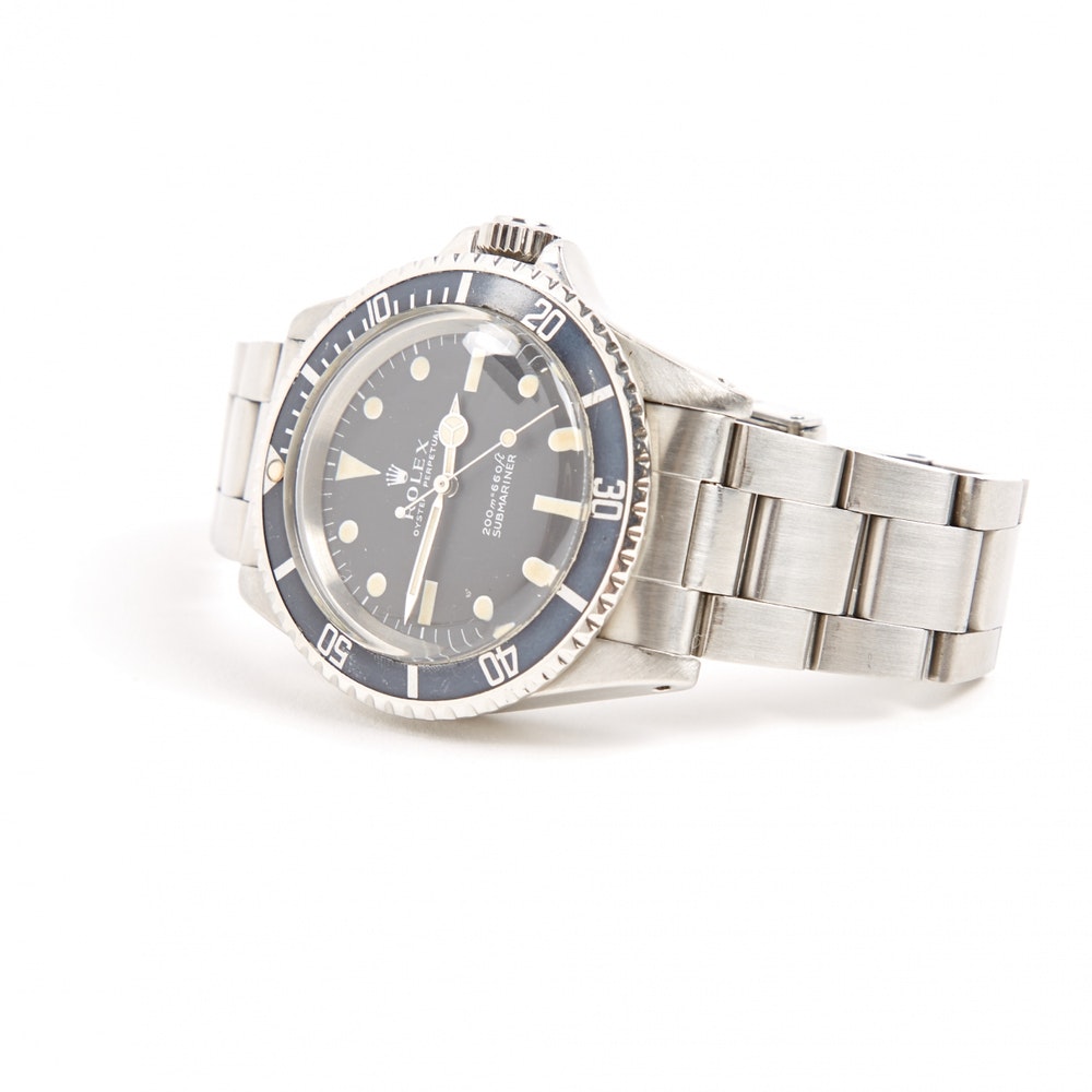 Montre Submariner de 1970. Vintage. Cadran rare « meters first ». Bracelet antérieur à la tête de montre (rolex oyster blindé). Index tritium avec une belle patine vintage.
