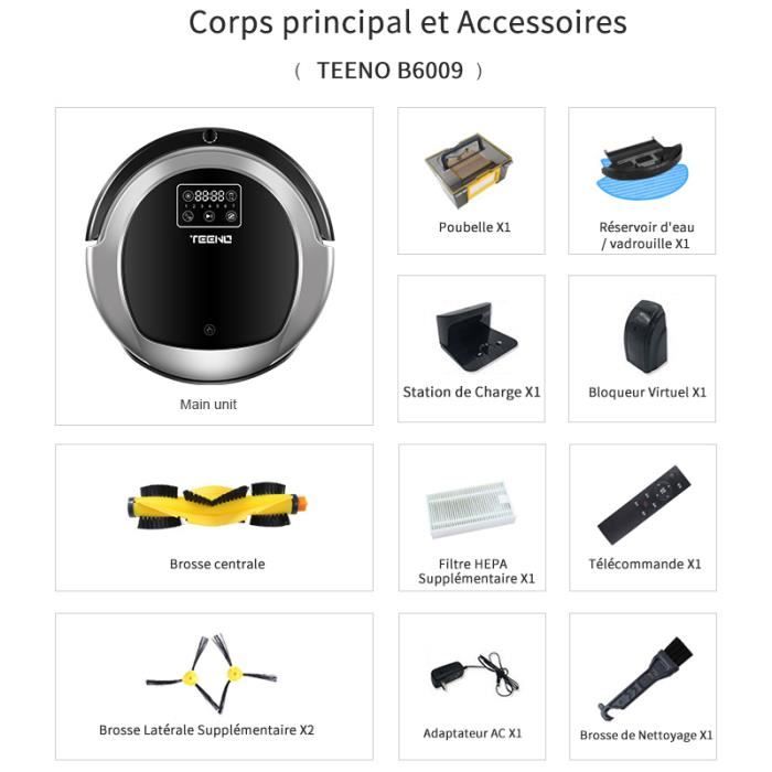 Présentation produit : TEENO B6009 Robot Aspirateur Avec Carte de Navigation, Mémoire, Désinfection Lumineuse à 2 Voies, Filtre 3D Aspirateur Robot